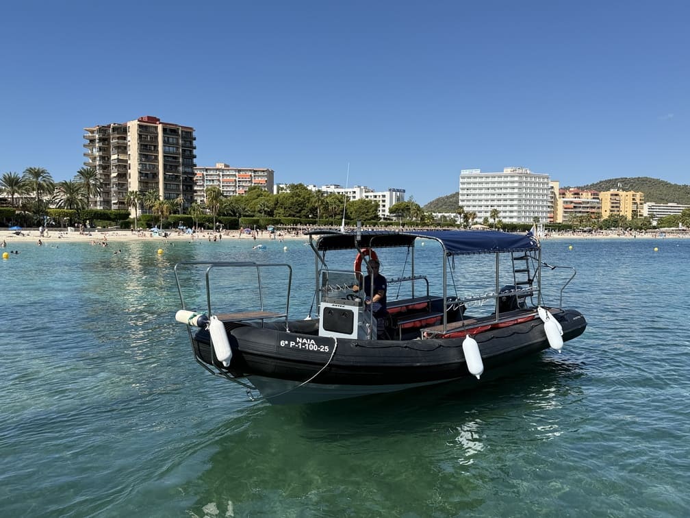 This 300 HP rigid inflatable boat is the perfect companion for dive enthusiasts, combining speed, stability, and practicality. With its powerful engine, the boat provides quick access to remote dive sites, ensuring you spend more time underwater and less time traveling. Designed specifically for diving, it features ample space for diving gear and equipment, making it easy for divers to prepare and store their essentials. Capable of carrying up to 13 passengers, it ensures comfort without sacrificing performance. Its durable, high-performance hull and deep-V design offer a smooth ride, even in rough seas, while providing maximum safety for all aboard. Whether you’re exploring underwater caves, shipwrecks, or the stunning coastal cliffs of Mallorca, this boat guarantees a seamless and unforgettable diving experience.